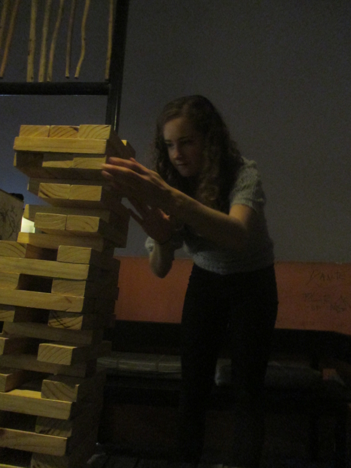 Gracias LLI housemate Naomi (Massachusettes) and giant Jenga on a rooftop bar in Lima with her and a bunch of others
