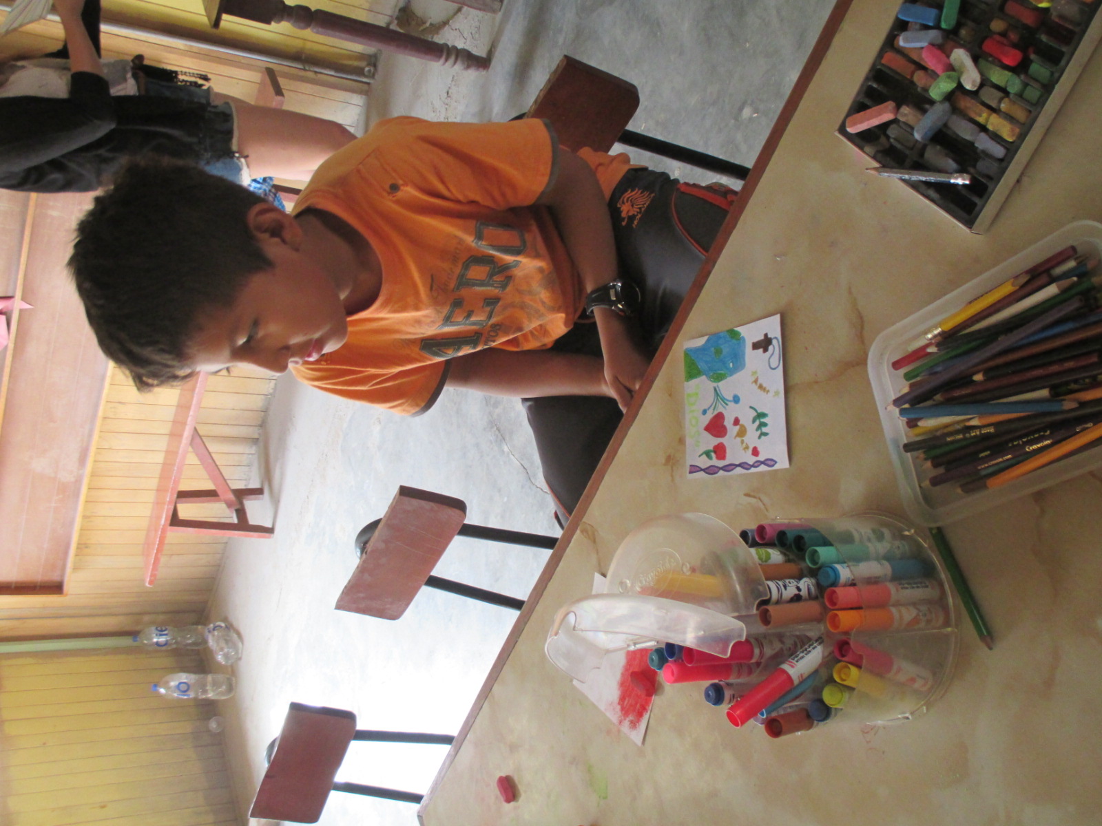Like with the reading classes, the art classes that LLI provides are the only opportunity most of these kids will get to create art. And they love it. It’s tough to think of things like crayons, markers, colored pencils and paper as being some special luxury, but here, they are. It’s not that these things aren’t available but it’s about the cost in a place where the emphasis is more on getting by day to day with the basics. But you can see a whole different light getting turned on in these kids when they have this chance for unrestricted creativity. I wanted to get more pictures of the art they completed but when they’re done they tend to grab their work and run out the door. It looks like they might be excited to show someone at home what they’ve done.