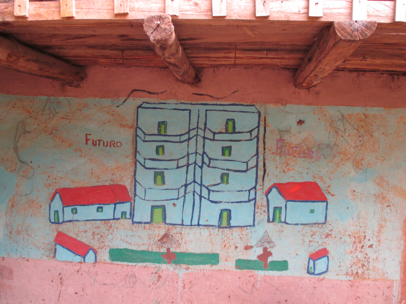 You see murals painted on a lot of houses here. Notice the word “futuro” on the left. It’s like a dream of what their village could be someday